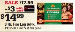 Set the mood with 3 hour Fire Logs. A 6 pack is on Sale for $17.99 - $3 with Ace Rewards = $14.99