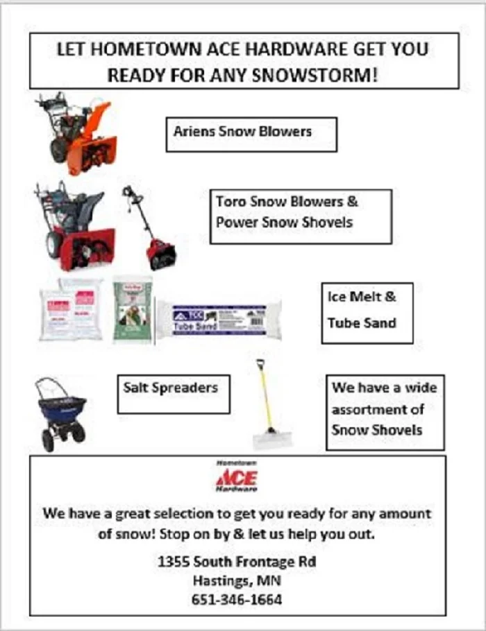 Hometown Ace Hardware can help you out with all your Snow Removal needs! Stop by and pick up what you need to be ready for the big snow storm!