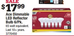Ace Dimmable LED Reflector Bulb - 6 pack. 651 watt equivelant.