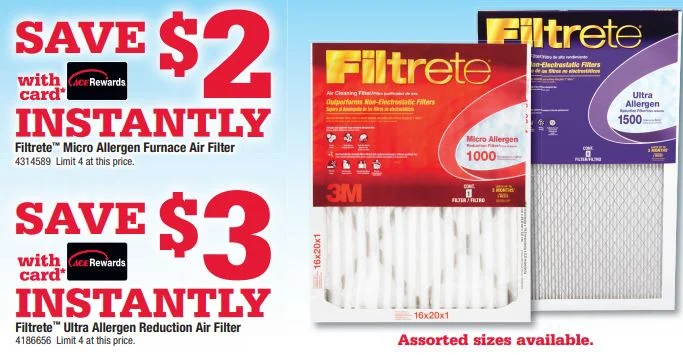 3M brand Filtrete Micro Allergen Furnace filter - select sizes Save $2 instantly with Ace Rewards