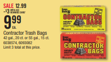 Contractor Bags are on SALE at Hometown Ace Hardware. $12.99-$3 with Ace Rewards= ONLY $9.99 per box. Your choice between 42 gallon - 20 count or 55 gallon - 15 count; Limit 3.