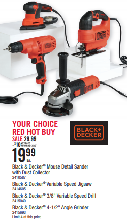Black & Decker Tools...Your Choice SALE PRICE $29.99-$10 with ACE Rewards = $19.99 each.