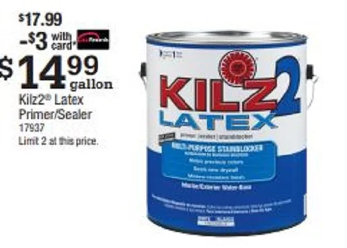 Prime it and Seal it with Kilz2 Latex Primer/Sealer Multi-purpose Stain Blocker on SALE during the month of September at Hometown Ace Hardware for just $17.99 - $3 with Ace Rewards = Just $14.99 per gallon. Limit 2 at this price