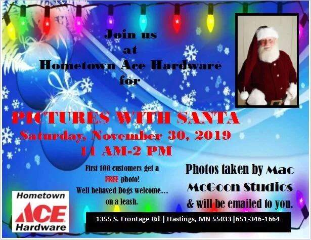 Ho, Ho, Ho! Santa is here tomorrow for pictures from 11am - 2pm at Hometown Ace Hardware!