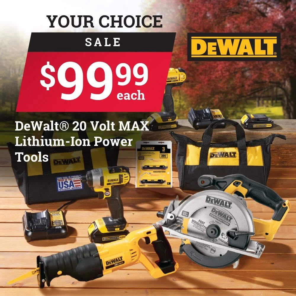 DeWalt® 20 Volt MAX lithium‑ion power tools make any DIY weekend project easier. Choose from an impact driver, drill/driver, reciprocating saw, circular saw or battery pack 2/pk. for $99.99 each. Pick yours up today at Hometown Ace Hardware. *Offer valid through October 31st. #HometownAceHardware